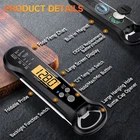 * Instant Reading with High Precision.Insert the probe tip with a diameter of 1.6mm into the meat easily, and accurate temperature reading comes quickly within 2-3 seconds. The instant-read thermometer requires less response time to get measurements. Accuracy: +/-1°F. Temperature Range: -58℉~572℉(-50℃~300℃). * Large LED Display with Backlight.The screen is large enough for you to get readings effortlessly, and a backlight function lets the screen show the measurements clearly, even in bright outdoor light. The warm light of the digital meat thermometer makes it easy for you to read the temperature under poor light, reducing eye fatigue. * IPX7 Waterproof Grill Thermometer.Wash the waterproof cooking thermometer with running water after use and get a brand-new thermometer again. Note: Never soak the food thermometer in water. Store the probe thermometer by absorbing it onto any metal surface or hanging it on a hook with the inbuilt magnets or hanging hole. * Safe Long Probe, “Hold” Function.A safe probe length extends to 4.6in and works with the foldable design to keep the direct heat away, ensuring both your hands and the fire source are safe. Once the reading shows, hold it to view after removing it from the heating food. What’s more, there is a bottle cap opener to facilitate your life. * 100% Satisfying After-Sale Service.Contact us directly without hesitation, no matter whether there are defects after delivery or any problems or confusion during use. We’re ready to help and offer the best solution to win your satisfaction. Power Source: CR2032 Cell Battery. One is pre-installed, and the other is for replacement.