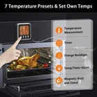 Features: Multi-Use Electric Meat Thermometer : The digital thermometer is perfect for any kitchen! It is preset core temperatures for 7 types of meat with a probe temperature and timer shown on the display. This makes it easy to cook your food perfectly every time! Instant Temperature Reading: Our meat thermometer has an easy-to-read orange backlit digital display, which is easy to use and instantly readable! Simply insert the probe into your meat and get an accurate temperature reading in just seconds. Temperature display unit can be selected as °C or °F. Timer Mode: Digital kitchen timer features countdown and countup ability, up to 99 minutes and 59 seconds. With high temperature alarm, keep track of your meat without having to worry about overcooking or undercooking it. High Accuracy And Heat Resistance: You can cook with wide temperature range from 32 to 572 ℉ (0 to 300 ℃) with 1℃ resolution and high accuracy 1.8℉/1℃. Multiple Mounting Options: Digital food thermometer, features a magnetic back to allow you to easily attach to refrigerator or any metal surface; The back cover is provided with a base stand and a hanging hole, perfect for desktop or wall hanging. Specifications: Measuring Range: 0-300℃/32-572℉ Temperature Resolution: 1℃ Temperature Accuracy: ±1℃ Power Supply: 2 * AAA battery (not included) Material: ABS Item Size: 8 * 8 * 2 cm / 3.15 * 3.15 * 0.79 inch Package List: 1 * Food Thermometer 1 * Probe 1 * User Manual (English)