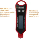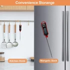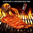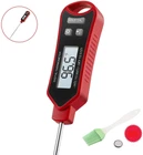 SUPER FAST & ACCURATE: Instant Reading Thermometer will gets temp readout within 3-5 seconds with high precision sensor accuracy of ±1℃, Avoid overheated or undercooked food, Make sure to get the best flavour. Perfect for huge turkey, chicken, bread making, jam making, chocolate making, barbecue, hot water, hot milk, and even bath water. HOLD & CALIBRATION: Meat thermometer can lock readouts when probe is removed, Keep convenience and safe; Calibrate function will keep a high precision after a long period of use. WATERPROOF & CONVENIENT STORE: This food thermometer was IP66 rate waterproof, You can clean it with water. The meat thermometer can be easily hold in kitchen hooks, And the magnetic back design will help you absorb to refrigerator and other iron materials. INTELLIGENT DESIGN: Digital Meat Thermometer will auto-shut off if readout stays on for 10 minutes; 5.2 inch long probe keep you safe to avoid scald; Backlight LED display ensures readability in dim light conditions; The temp Range is -58℉ to 572℉, Never leave this food temperature probe in high temp environment such as closed oven, frying pan, grill and etc; Battery included .