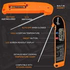 2-PACK Digital Cooking Thermometer Instant Read Digital Wireless Kitchen Device for Food Meat BBQ Grilling Baking Deep Frying, Orange Are you tired of guessing if your food is at the proper temperature? Have you had enough of awful overcooked or undercooked food? The instant-read food thermometer with its instant and accurate reading is the best option for you! Nobody likes getting sick and the Digital meat thermometer will help to end undercooked, rubbery food that’s still laden with microorganisms whose sole purpose in life is upsetting your stomach at the worst possible times :( By having an exact reading of the temperature, you never have to go into every meal concerned whether or not you’ll make it out afterward ever again :) Instant Read Thermometer : Provides accurate temperature measurements in just 2-3 seconds with a wide temperature range of -58℉ to 572℉ (-50°C to 300°C). Switch easily between Celsius and Fahrenheit. Backlit LCD Display : The bright, backlit display makes it easy to read temperatures even in low-light settings, perfect for evening BBQs or dimly lit kitchens. Powered by 1x AAA battery (not included). Automatic Shut-Off Feature : Designed with an automatic power-off function, this thermometer conserves battery life by shutting down after 10 minutes of inactivity. Exceptionally Long Probe : Made from food-safe stainless steel, the long probe allows you to measure the temperature of food or liquids with precision, ensuring safe and accurate readings without compromising quality. Measure Everything : Ideal for measuring temperatures of a wide variety of foods, including large turkeys, chickens, bread dough, jams, chocolates, and liquids like hot water, milk, or even bathwater.