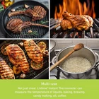 FAST READING & HIGH PRECISION:2-3 seconds response time. Accurate to ±0.9 degrees Fahrenheit. Calibration for maximum measurement accuracy. MULTI-FUNCTIONAL:A large backlight screen can let you see the temperature clearly even if in a poorly lit kitchen or outdoors in too much light. No need to worry about cooking without power. Early warning reminding you to replace the battery in time.Automatic shutdown function activates after 10 minutes without operation. You can lock the temperature with the “Hold” button and see the temperature up close. SAFE AND RELIABLE MATERIAL:Foldable 180°food-grade probe, 304 stainless steel, non-toxic and safe to touch food. High-quality ABS shell, which is durable. IP67 waterproof, you can safely use under running water.(Note: Please wipe or rinse with a soapy cloth. Don’t soak or put in the dishwasher) SAFE AND RELIABLE MATERIAL:Can measure temperature for beef, steak, lamb and other cooking, also can be used for all liquid items such as milk, soup, hot oil, self -brewing etc. GREAT GIFT:Compact and practical, which is a must in every kitchen. You can give it as a gift to your family and friends who love to cook and make their dishes more perfect. SIMPLE AND CONVENIENT STORAGE:Built-in magnets and large hanging holes make storage easy. Four additional pairs of velcro can be stuck on smooth walls.