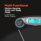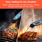 FAST READING & HIGH PRECISION:2-3 seconds response time. Accurate to ±0.9 degrees Fahrenheit. Calibration for maximum measurement accuracy. MULTI-FUNCTIONAL:A large backlight screen can let you see the temperature clearly even if in a poorly lit kitchen or outdoors in too much light. No need to worry about cooking without power. Early warning reminding you to replace the battery in time.Automatic shutdown function activates after 10 minutes without operation. You can lock the temperature with the “Hold” button and see the temperature up close. SAFE AND RELIABLE MATERIAL:Foldable 180°food-grade probe, 304 stainless steel, non-toxic and safe to touch food. High-quality ABS shell, which is durable. IP67 waterproof, you can safely use under running water.(Note: Please wipe or rinse with a soapy cloth. Don’t soak or put in the dishwasher) MULTIPURPOSE:Can measure temperature for beef, steak, lamb and other cooking, also can be used for all liquid items such as milk, soup, hot oil, self -brewing etc. GREAT CHOICE :Compact and practical, which is a must in every kitchen. You can give it as a gift to your family and friends who love to cook and make their dishes more perfect.