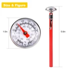 Probe Food Thermometer: Provides timely and accurate temperature readings with a measurement range of 0°-220°F. It can be used to measure the temperature of meat, milk, coffee, tea, etc. (Tip: Cannot be used for fryers or ovens; The probe should be inserted more than halfway during measurement, otherwise the measurement result may be lower than the actual temperature.) Durable and Easy to Clean: The thermometer has a 6" stainless steel probe and 1" shatterproof lens dial. The body is strong, durable, and easy to clean. (Tip: Do not wash it with a dishwasher.) No Batteries Required: The pure mechanical structure design means there is no need to install batteries, so it is easy to use anytime, anywhere. Multi-purpose Case: This product includes a protective case to keep the thermometer clean when carrying it from place to place. You can use the case to hold the thermometer when measuring the temperature to prevent your hands from being scalded. Versatile Cooking Companion: This food thermometer allows you to easily monitor and control the temperature inside your food, ensuring that your culinary creations are cooked to perfection.