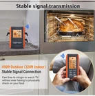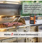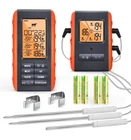 490ft Stable Signal Connection and Hands Free Monitor: Smoker thermometer with a professional remote signal up to 490 feet, you can watch the game or connect with your family, pets or guests while the remote meat thermometer for grill grilling watches your meat. After rigorous testing, our wireless grill thermometer 's signal is strong and stable, reaching 2 times farther than a regular connection, 4 times more than Bluetooth Professional Feature - Sturdy Construction and User-friendly Interface: The cooking thermometer adopt TPE and plastic integral forming technology - anti-skid and more sturdy. Better than some other digital meat food thermometers wrapped with rubber sleeve. The buttons on the left are for meat and taste setting, the buttons on the right are for timer setting, make the grill thermomter for inside grill very straightforward to use Monitoring Food and High Low Ambient Temp Range Simultaneously: Meat smoking thermometer not only allows you to set your own cooking temperatures, but also can set HI LOW temp range for your grill or smoker to know when to add more fuel! oven safe meat thermometer will flash and beep to remind you if the temperature ever goes out your set range IPX7 Waterproof Probe with Step-down Tip Design: BBQ meat thermometer for cooking has 3 probes which are built to IPX7 standard with non-slip design, easier to plug in or pull out. Heat resistant material help to prolong service life. 2 food temp probes / digital candy thermometer with step-down tip design to get temperature more precisely and quickly - Instant Read within 1-3s USDA Preset Temperature Settings and Built in Timer: Oven thermometer for electric oven with preset temperatures for 8 types of meat and their various doneness levels recommended by USDA; All of the preset temps can be reset to your desired tastes, it's a professional digital meat thermometer for grill / wireless thermometer for smoking