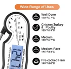 Meat Thermometer for grilling Digital cooking grill Kitchen Probe Food meat Beef Thermometer for grill grilling meat food cooking type 1 / Black-White, Ultra-Fast & Consistent Temp Reading + Get the accurate and consistent food temperature in 3 seconds through top-quality sensor as well as the stainless steel step-down tip, ±1.8°f (±1°c ), a simple glance even when on a rush cooking. IP65 Waterproof & Convenient Storage + Quickly clean the digital meat thermometer under running water; features a magnetic back to allow for placement on any metal surface. Perfect Gift + Beautifully packaged, making it the ideal gift for any grilling or cooking enthusiast or professional. Convenient and Clear + Get the temperature by the bright and large LCD screen instead of fumbling with your phone flash to get a read! One Year Warranty + Enjoy a smooth & frustration free experience with our one-year warranty! We stand by our products so you can make your purchase with confidence! NOTE:During the measurement,press the HOLD button once,the"HOLD" icon will display on the LCD screen, the measurement value and the other button will be locked. Press the button again to unlock the value and the other button. type 2 / Blue, ACCURATE AND FAST TOGETHER + This meat thermometer has a 5-inch stainless steel temperature probe that can easily detect the temperature of food. You only need to wait 2-3 seconds to get the accurate temperature of the food. At the same time, the food thermometer can be switched between Celsius and Fahrenheit, just click the "℃/℉CAL" button. The temperature range is -50℃ to 300℃ (-58℉ to 572℉), suitable for turkey, steak, and candy. Making, outdoor grilling and more. READING TURNS OUT TO BE SO SIMPLE + The meat thermometer digital has a large LED display with backlight. You can clearly see the numbers on the display. At the same time, clicking the "light" button in extremely dark scenes can help you better obtain the temperature value of food. If you want to keep the temperature fixed, you just need to click the "Hold" button to keep the food at its most delicious moment. CONVENIENCE IN LIFE STARTS WITH SIMPLE OPERATION + The probe reads when unfolded, and closes when restored to its original position. It automatically closes after 3 minutes when not in use, saving power and providing peace of mind. The magnet and hanging hole design of the cooking thermometer will help you store it better. You can attach it directly to the refrigerator, or hang it on a hook to make your kitchen tidier. WEAR RESISTANT AND WATERPROOF, FEARLESS OF DAMAGE + The shell of the instant read meat thermometer is made of high-quality wear-resistant materials, which is sturdy and anti-fall. It has also been strictly waterproofed and upgraded to IP67 waterproof level. You can choose to wipe it with a wet towel or rinse it directly with tap water (note: not dishwasher safe) without fear of causing damage. type 3 / black 𝐐𝐮𝐢𝐜𝐤 𝐚𝐧𝐝 𝐀𝐜𝐜𝐮𝐫𝐚𝐭𝐞 𝐓𝐞𝐦𝐩 𝐑𝐞𝐚𝐝𝐢𝐧𝐠𝐬. A meat thermometer detects food’s real-time internal temperature and displays accurate readings in seconds. The strict quality control during the design/manufacture process guarantees measurement speed and accuracy. Allow you to adjust the firepower or time and ensure the food reaches the desired temperature. 𝐄𝐚𝐬𝐲-𝐭𝐨-𝐑𝐞𝐚𝐝 𝐋𝐄𝐃 𝐁𝐚𝐜𝐤𝐥𝐢𝐭 𝐃𝐢𝐬𝐩𝐥𝐚𝐲. The screen is large enough for you to get readings easily, and the backlit display clearly shows values even in bright outdoor light. The warm light of the digital meat thermometer enables you to read the temperature easily in dim light, reducing eye strain. Accuracy: +/-1°F. Range: -58~572℉(-50~300℃). 𝐈𝐏𝐗𝟕 𝐖𝐚𝐭𝐞𝐫𝐩𝐫𝐨𝐨𝐟 𝐆𝐫𝐢𝐥𝐥𝐢𝐧𝐠 𝐓𝐡𝐞𝐫𝐦𝐨𝐦𝐞𝐭𝐞𝐫𝐬. After use, directly rinse the instant read digital thermometer under running water to make it brand-new again. Note: Never soak the food thermometer in water. Store the cooking thermometer by absorbing it onto any metal surface or hanging it onto any hooks, thanks to the built-in magnets and added loop. 𝐒𝐚𝐟𝐞 𝐋𝐨𝐧𝐠 𝐏𝐫𝐨𝐛𝐞, “𝐇𝐨𝐥𝐝” 𝐅𝐮𝐧𝐜𝐭𝐢𝐨𝐧. To ensure safety, we’ve prolonged the probe length to 4.6in, allowing the long probe with a foldable design to keep direct heat away and protect your hands from hot steam. When the reading comes up, press “hold” to keep it and read it after removing the device from the hot food; ideal for home/outdoor use.