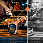 2-Second Instant Accurate Reading: Get the instant temperature reading within 2s after inserting the food thermometer into the meat. Achieve fast and accurate temperature measurements with an accuracy of ±1℉. Support unit switch between degrees Celsius and degrees Fahrenheit Custom Temperature Setting And Kitchen Timer Mode: Built-in 8 food cooking modes, varying from beef, lamb, veal, hamburger, pork, turkey, chicken to fish. Customize the alarm temperature and it beeps to alert when reaching the target temperature. Press any button to silence it. Say goodbye to undercooking/overcooking with additional timer mode Simple Operation And Wide Application: Lift the battery cover to use as a stand or use the magnets to absorb onto the metal surface. Require 2 PCs AAA batteries (included) to work. Measure the temp of both hot foods and cold drinks with a wide range of -58℉~572℉/-50℃~300℃ Durable Material And Waterproof Probe: Crafted with quality ABS material, the food thermometer will be long-lasting. Waterproof 304 stainless steel (Length: 16cm/6.3in) features high-temperature resistance. High-strength cable (Length: 104cm/40.9in) works with the probe, measuring the real-time temperature of boiling oil or meat in the oven LCD Display Sensitive Touch Screen: Touch the three touch buttons on the screen to set time/temperature, switch the unit or change the modes. Large LCD display with backlight enables a crystal clear view and allows for wide viewing angles, perfect for outdoor BBQ or patio grill at night