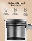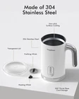 4-IN-1 FROTHING - This LONGDEEM coffee electric milk frother feaures 4 functions, warm milk froth(thick firm foam), warm milk froth(airy foam), cold milk froth and heat milk. Perfect for present! LARGE CAPACITY - Enjoy ample froth, whether you're a solo drinker or hosting pals. This frother effortlessly makes up to 5 oz of froth or heats 10 oz of milk. EASY CLEANING & SAFE USE - Featuring a Teflon coating and double-wall design for Non-Stick coating, scald-protection, our milk frother is exceptionally easy to clean – simply rinse with hot soapy water. For added safety, it's equipped with an automatic shut-off feature. SPEED & SILENCE OPERATION - Whip up hot or cold milk froth in under 2 minutes, quietly. Our 500W frother makes beverage magic at below 30dB. POUR WITH PRECISION - Say goodbye to guesswork. Our built-in milk level indicator ensures the right pour every time. RELIABLE ASSURANCE- The LONGDEEM Frother is backed by a 2-year assurance, lifelong support, and our commitment. Need us? We're always an email away. NOTE - Please do not immerse the outside bottom of this milk frother into the water when you clean it. Product Description Longdeem 4 in 1 Electric Milk Frother Quick and Quiet Create delicious warm or cold foam in seconds, thanks to the whisper quiet frothing paddle. Easy Handling Comfortable handling and pouring. Milk Level Indicatores Warms up 10 oz of milk or non-dairy alternative. Creates up to 5oz of foam. Safety Design Pitcher exterior and handle stay cool, even after use. Tips: It is generally not recommended to heat milk above 60°C, as higher temperatures can damage the nutritional components in milk, resulting in nutrient loss. Longdeem Kitchenware Series Add to Cart Add to Cart Add to Cart Add to Cart Customer Reviews 4.2 out of 5 stars 187 4.2 out of 5 stars 187 4.2 out of 5 stars 187 4.2 out of 5 stars 187 4.2 out of 5 stars 187 Price $36.98 $ 36 . 98 — $35.99 $ 35 . 99 $39.99 $ 39 . 99 $35.99 $ 35 . 99 Color Matte White Blue Green Stainless Steel Matte Black Hot Airy Foam ✔ ✔ ✔ ✔ ✔ Hot Dense Foam ✔ ✔ ✔ ✔ ✔ Heating Milk ✔ ✔ ✔ ✔ ✔ Cold Milk Froth ✔ ✔ ✔ ✔ ✔ Frothing Oz 5 5 5 5 5 Heating Oz 10 10 10 10 10