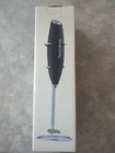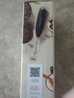 Handheld stainless steel milk frother with stand from Peach Street's Mango Collection. Brand new, never taken out of packaging. Takes AA batteries. Easy to clean! Black and silver, 1.5"x1.5"x9.25"