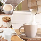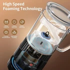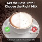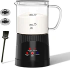 【4-in-1 Milk Frother】: Your versatile companion for creating thick warm foam, light warm foam, cold foam, and warm milk. Perfect for all your DIY needs. This frother delivers rich, creamy foam to elevate your coffee experience with a professional touch. Enjoy cafe-style beverages from the comfort of your home. 【Visual Transparency】: Witness the artistry of frothing with our frother's transparent glass, ensuring precise control and preventing spills when adding milk. 【Easy Operation, Quiet and Fast】: Controlled with just one button. Experience the serene efficiency of our frother, quietly turning milk into creamy foam in just 2 minutes. With its quick operation and hands-free capability, you can enjoy uninterrupted moments of indulgence. 【Easy to Clean】: Featuring a wide-mouth design for effortless cleaning.Pls clean promptly after each use to prevent residue buildup, ensuring the machine is ready for your next frothing session.(Note:this model isn't dishwasher-safe,pls avoid water flowing into the bottom during cleaning.) 【400ML Large Capacity】: Compact at 4.3 * 5.9 * 8.0 inches. Heat up to 400ml (14 OZ) of milk at once, or froth up to 160ml (5.4 OZ) in a single operation, perfectly meeting your household needs. Join us in crafting delicious cappuccinos for your family and friends!! 【Frother Usage Guideline 1】: For thicker, creamier foam, we recommend chilling milk to approximately 39-43 ℉ before use, preferably with at least 3% fat content pure milk. Avoid using flavored milk,avoid using milk with high sugar content. 【Frother Usage Guideline 2】: To ensure your frother serves you longer, please follow cleaning instructions. Avoid water reaching the bottom of the machine during cleaning. After cleaning, promptly wipe dry with a cloth. 【Convenient Accessories Included】: Each machine comes with a small brush for cleaning and a spare whisk for frothing, ensuring you're always prepared.
