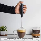 GET CREAMY FROTH QUICKLY: brings you its portable handheld milk frother for frothed milk. If you love your morning coffee with lots of froth and foam, then you certainly want to have frothing wand at home or your cafe style cappuccino. It comes with a stand for easy storage and can be kept on the countertop. BATTERY OPERATED FOR PERFECT FROTH IN NO TIME: The mixer is battery powered so you don't have to worry about cords and finding sockets. Heat up the milk, immerse the espresso maker into the cup and turn it on. The milk foamer will start creating creamy froth on the milk instantly. Within 15 - 20 seconds, you have a cup filled with creamy froth and ready to go into your coffee latte. BEAUTIFULLY STYLED WITH VERSATILITY: The machine is beautifully styled in black color to fit into any modern kitchen. It is lightweight and has ergonomically designed soft touch handle. It is easy to use and easy to clean. It can be used to froth other liquids besides hot milk. Use it to make milkshakes for your kids or cocktails for your friends. It will work well with both hot and cold liquids. Cleans In Seconds: Cleanup takes only a few seconds. After frothing, simply place the stainless steel whisk under running water while pulsing a few times and done! Place your frother back on its stand and it's ready for use. This simple, convenient all-around frother is perfect for coffee enthusiasts and professionals. The Perfect Tool For Coffee Lovers: No need to make a trip to your favorite coffee shop, you can now create mouth-watering froth right at the comfort of your home. This frother is an affordable and cost-effective solution to your coffee needs. Description: Milk Frother: Milk Frother is a handheld battery operated milk foamer machine. It is a frothing wand that can instantly froth hot or cold milk for your favourite drinks. Where ever you need frothed milk or cream, Frappe maker will do the job for you quickly and easily. Easy to Operate: the electric Milk frother is very easy to operate. Put in the required batteries and it is ready to work. Take the hot or cold milk in a cup and plunge the frother half way down and power it on. The frother will get to work instantly. Just keep moving the frother up and down. The foam will start forming instantly. When you have the desired amount of foam turn off the frother and your professional style foamed milk is ready for your drink. Great Kitchen Tool: portable coffee mixer can be used for purposes other than just frothing milk. It is a great tool to have around the kitchen as it can be used for mixing milkshakes, cocktails, fruit drinks, eggs, soups, dressing, etc. It can be used for all liquid foods. Great Design and Easy to Clean: The stainless steel latte maker is designed for comfort and style. It will blend right in with any modern kitchen. The handle is ergonomically designed so it feels comfortable in your hands. It is lightweight and easy to clean. Just put it in a glass of hot water and whizz up to clean it. COMPLETE SET!: Each set include Milk frother with a stand, stainless steel milk pitcher and stainless steel coffee art stencils, start to create your coffee at home like a professional! Feature: Type: Handheld Frother Color: Black Battery: 2 AA batteries (Not Included) Size: 3.3×3.7×23.5CM Material: ABS plastic + stainless steel Power :1.5v Handheld electric design, save time and effort, froth quickly. Great for cafe shops, drink stores and restaurants to froth milk for latte art. Package Includes: 1x Milk Frother with Stand