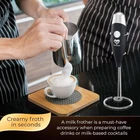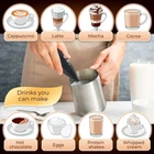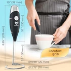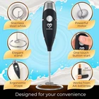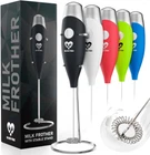 Our milk frother gives milk a fluffy, foamy texture. Use this mixer to create airy toppings and rich coffee drinks, such as a cup of cappuccino or latte. Battery-powered milk frother works in seconds, converting warm or cold milk to airy foam. This portable handheld milk frother with stand is battery operated, and works longer than similar battery powered electric drink mixer. Our milk foamer with its new super quiet and powerful engine will create creamy froth to make your favorite hot drink in a few seconds. Milk frother handheld speed whisk is made of high-quality durable stainless steel and has a reliable light soft-touch handle (durable ABS plastic). Ergonomic power button makes it easy to use comparing to power button on top of other cappuccino frothers and frappe makers. Our milk frother makes a beautiful and useful gift. Impress a special someone by sharing the barista tool that allow them to prepare the most delicious coffee in the world! Order now and start to create thick and creamy foam for your homemade drinks. If you are not completely satisfied with our hot drink mixer wand or have any questions, simply contact us and we will do whatever it takes to make you happy. We are committed to outstanding customer service! Customer satisfaction is our top priority. Handheld milk frother makes it easy to top your coffee or dessert with a dash of this flavorful ingredient. This hot chocolate maker is somewhat like automatic immersion blenders, in that it is handheld and must be inserted into the liquid. Our hot milk frother is made of high-quality light materials with a comfortable soft handle and elegant design, and is the ideal tool for connoisseurs of Latte, Cappuccino, Coffee, Bulletproof Coffee, Hot Chocolate. You can make fluffy foam with a frother wand from not only cow's milk, but also alternatives, such as soy milk, almond and goat milk. Hot drink mixer is very reliable, it is easy to store and easy to clean. This handheld drink mixer has a very ergonomic operation button and a comfy soft non-sliding handle. Its stylish design and the premium quality of all materials will allow the milk frother a highlight of the decor of any modern kitchen.