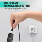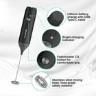 Milk Frother Handheld Double Whisk Foam Coffee Maker USB Rechargeable Electric Description: USB-C Rechargeable Milk Frother: Our rechargeable milk frother is equipped with a 500mAh lithium battery, ensuring long-lasting performance without the need for frequent battery replacements. This electric whisk frother can be connected to adapter sockets, laptops, power banks, and car chargers for versatile charging. Conveniently portable, it's suitable for use at home, in the office, outdoors, or while traveling Powerful Frothing Experience: The milk frother is super powerful with 11000 RPM, this coffee foam maker turns ordinary milk to frothy perfection in seconds. The housing is crafted from ABS material, featuring a sleek and sturdy design. Meanwhile, the mixing head is built with tough, food-grade 304 stainless steel, guaranteeing resistance to rust and breakage, all while ensuring quiet operation and optimal efficiency Easy to use and clean: This electric whisk offers a simple and convenient way to make delicious coffee drinks. With just one button on the side, you can easily start or end the frothing process. Simply add milk, dip the coffee mixer wand into the cup, and press the button to quickly and effortlessly create a rich, creamy froth. Plus, the device is easy to clean – just rinse it with clean water or place it in a cup of water Ideal for Coffee Enthusiasts: Skip the coffee shop run and enjoy lattes, cappuccinos, matcha, hot chocolate, powdered drinks, or iced coffee at home with this milk frother, our handheld frother blends a lightweight build with an ergonomically designed soft-touch. This electric frother embodies unmatched convenience, serving as an ideal gift for friends and family. Let them relish the ease of preparing delightful homemade chocolate or cappuccino beverages What You Get: Included in our package is a rechargeable handheld milk frother along with 1 TYPE-C charging cable. Please be aware that our powerful rechargeable frother may cause liquid splashes. To avoid any spills on your desk, clothes, or surrounding surfaces, we recommend using a larger and taller container. Kind reminder: Do not leave the milk frother unused or uncharged for a long time to avoid damage to the battery