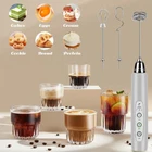 Milk Frother Handheld Double Whisk Foam Coffee Maker USB Rechargeable Electric Description: Effortless Frothing: With 3 adjustable speeds, our hand frother effortlessly creates creamy foam for coffee and blends beverages in 15-20 seconds without noise. Perfect for electric coffee stirrer users who seek convenience and quality results Easy to Clean: It comes with 3 detachable whisking heads (a dual-layer spring whisk, a balloon whisk, and a hook whisk) for versatile frothing options. Featuring a compact design and 304 stainless steel construction, our frother is a breeze to clean. Simply rinse or wipe with ease, making cleanup a hassle-free task for enthusiasts of all types Compact and Portable: Its sleek and compact design, with a flat bottom, allows our hand held frother to stand independently even without a stand, freeing up your hands for other tasks. Perfect for on-the-go use and gifting, this frother is a convenient companion for coffee lovers everywhere Go Green: Say goodbye to disposable batteries! Our frother is powered by a rechargeable 1200mAh battery, charged via USB-C, ensuring long-lasting performance without the need for frequent battery replacements. Perfect for coffee blender stick and electric stirrer for powder drinks lovers who value sustainability User-Friendly Design: With one-touch operation, battery indicator lights, and an ergonomic handle and buttons, our frother is designed for simplicity and comfort, making it a joy to use every day. Ideal for powder mixer users seeking convenience and ease of use