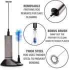 Store New Arrivals Add to Favorite View Feedback Contact Milk Frother - Handheld Electric Wand Mixer - Mini Battery Operated Hand Immersion Frothers - Small Whisk Foam Maker - Matcha Blender Foamer Description Item model number EPMF07 Color Silver Country of Origin China Product Dimensions 1.25 x 1.25 x 9 inches Material Type Stainless Steel Item Weight 3 ounces Batteries 2 AA batteries required. Department glass gifts kitchen tools mom mother law father Is Discontinued By Manufacturer No Barista-Grade Quality: This pro-calibre milk frother packs plenty of power and is constructed of premium materials for performance and durability. The whisk rod is made of stainless steel with the optimal thickness for smooth and efficient operation. Easy to Use: Simply immerse the whisk head into the liquid (we recommend filling a glass 1/3 full) and press the on/off button. Whip for 15-20 seconds (longer for non-dairy milk). 3 AAA batteries (not included) powers about 150 froths of 20 seconds. A Versatile Multi-Purpose Machine: This quality frother is great for coffee lovers and their favorite latte and cappuccino drinks, whether they like regular milk or alternatives like almond, soy or coconut milk. It's also great for mixing matcha tea! Two Convenient Accessories: We've included a clean brush attachment that's great for scrubbing water bottles, plus a sturdy stand to store them all together! To clean the whisk or brush, just dip in soapy water and run briefly or place in dishwasher. Eparé Trusted Quality: You'll receive (1) Milk Frother 9" long and 1.25" in diameter and weighing 3oz, one (1) Cleaning Brush Attachment 4" long, one (1) Stand. Requires 3 AAA batteries (not included). We stand behind our quality. Product Description WHAT HAPPENS WHEN YOU BUY AN EPARÉ PRODUCT? YOUR KITCHEN IMMEDIATELY GETS AN UPGRADE! We’ve got you covered with our wide selection of unique accessories for breakfast, dinner and everything in-between! Empowering entertainers since 2012. We’re here to provide you the products you need to turn your kitchen into a place of joy and conversation. Delivering affordable versatile products is kind of our thing, and don't forget about our lifetime quality promise and fancy packaging. Every product you get from Eparé is an experience that will put a smile on your face and put you in a league with thousands of happy entertainers that came before you! Easy To Use Don't be intimidated by fancy coffee drinks! It's simple to prepare a generous portion of deliciously frothy foam with this quality tool. Simply fill a glass 1/3 full of your chosen liquid and insert the whisk head at an angle. Press the on/off button and work up and down through the liquid for 15-20 seconds (longer for non-dairy milk). Clean the whisk head by operating briefly in soapy water (or place wand in dishwasher). Dual Attachments It wouldn't be an Eparé kitchen gadget without thoughtful touches designed to enhance our customers' experience. We've built a high-quality home frother and included a cleaning brush attachment and quality stand. Use the brush to clean water bottles and other hard to clean kitchen vessels. And the stand keeps everything together so you'll never have to rummage through a drawer looking for parts. Multi-Purpose Froth your favorite milk on demand, whether you prefer half and half or soy, almond or coconut milk. This compact machine will deliver a delicious froth for your lattes and cappuccinos. It'll perfectly mix your matcha tea for you. And it will even perform light blending duties like whipping cream and thoroughly mixing your post-workout protein drinks. We've even included a cleaning brush attachment to scrub your water bottles! Compact & Convenient This complete home frothing system with stand is designed to take up little space, whether you want to keep it on a counter top or tucked away neatly in a cupboard. It's battery powered and compact, so it's a coffee lover's dream to keep in an RV, camper or watercraft. Who says you can't have delicious and frothy cafe quality lattes anywhere you go? A Whole Latte Love We've designed and manufactured our professional grade milk frother of premium quality materials so that it's built to last. The whisk wand is constructed from the highest quality stainless steel so that it won't wobble or bend during use. And you can expect to enjoy your frothy drinks for years to come because it's backed by the Eparé Limited Lifetime Promise. Meet the family behind it all! That’s a picture of my mom, dad, brother, and me in 2012. I was 21 years old when mom entrusted me with a small loan to start Eparé. She wanted me to make the best possible kitchen products, and the easiest way to achieve this is with your feedback! It helps me continue to improve our products and provide the best possible buying experience. Be sure to reach out with your questions and concerns because we are here to help. ABOUT US We offer the best prices around on high-quality products. Our E-store includes media such as books, movies, music and games while offering electronics, toys, sporting apparel, clothing, tools, general home, garden items, and more. SHIPPING We are always working hard to ensure your package arrives as soon as possible. Please understand that some factors like weather, high postal traffic, and the performance of shipping companies are outside of our control. We offer free shipping to the lower 48 states and ship within 3-5 business days of payment, usually sooner. We do not accept P.O. Boxes, APO, or AFO addresses. Please provide a physical address. Due to technical reasons - an order can't be canceled once placed. Payment We currently accept payment via eBay managed payments only. Once payment is cleared, we will dispatch your shipment within up to 5 business days. Please refer to the "Shipping" tab for more information regarding shipping speed to your destination. RETURNS We offer a 30-Day Return Policy on items that you are not completely satisfied wi