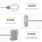 Milk Frother Handheld Three-Layer of Whisk- Battery Operated Electric Foam5069 [ and Safe]-Electric handheld coffee frother is made of food grade stainless steel, it 't rust, delivers double the power of other frothers. [Easy to Clean and Store]-After use this milk frother, just put the whisk in running water and briefly turn it on - instantly clean! [Three Layers of Whisk]-Three layers are different from others, double the power of other frothers and professional espresso makers available.you can spend less time and can create thicker foam. [Easy to Use]-Simple one-touch switch with a powerful motor but it has low noise level. Just put it into a container with liquid food up to 1/3 to froth. Battery operated and 3 AAA batteries (excluded) Product Name: Milk Frother Electric Colour: silver Material: ABS+stainless steel Size: 3.2 x 23.9cm Package Contents: 1 x agitator host 1 x sleeve 3 x different mixing heads