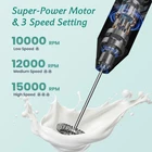 【High Speed & Fast Milk Frothing】Our electric handheld frother for coffee reaches an impressive 15,000 revolutions per minute, providing fast foam in just 15 seconds. The electric milk frother of housing is crafted from ABS material, featuring a sleek and sturdy design. Meanwhile, the mixing head is built with tough, food-grade 304 stainless steel, guaranteeing resistance to rust and breakage, all while ensuring quiet and optimal efficiency. 【Powerful USB-C Rechargeable Milk Frother 】This electric frother wand for coffee is equipped with USB-C charging with a 1200mAh lithium battery and a multi-functional storage stand, the coffee frother offers flexible and convenient charging solutions, ensuring that you can power it up anytime, anywhere. The included charging dock can also be used as a convenient storage stand, ensuring that your frother is always available. Conveniently portable, it's suitable for use at home, in the office, outdoors, or while traveling. 【Automatic self-calibrating stirring design】Our rechargeable milk frother Inspired by the racing car suspension system, our frother's mixing wand automatically corrects itself to prevent tilting and bending issues during prolonged usage. Its self-calibrating design guarantees hassle-free use and consistently creamy results, making it a must-have for any coffee enthusiast. The electric whisk has a built-in powerful low-noise motor, so you won’t disturb your family when using it. 【Foldable Frother Design】The handheld frother for coffee features an ergonomic handle that fits snugly in the hand, providing a comfortable grip during the foaming process. Engineered for improved grip and comfort, reducing hand strain during use. You can also turn the mixer counterclockwise to get a 90° folded state for even more flexibility. The electric drink mixer frother is easy to use and clean. Just put the whisk head into a cup of water and turn on the machine for a hassle-free cleaning experience. 【3 Speed Setting and 3 Replaceable Stirrers】The coffee mixer has three buttons on the main body of the mini hand mixer,3-speed adjustable options (low, medium, high).Use low speed for egg yolks and power drinks, medium speed for matcha and chocolate, and high speed for coffee,latte and cappuccino froth. The matcha frother comes with 3 premium food-grade stainless steel whisk for various uses,Spring whisk for frothing milk and coffee and making drinks;Balloon whisk for mixing eggs and cream;HOOK WHISK for mixing powders,making jam and baby food. 【Packages include】Our handheld milk frother with stand is specifically designed for coffee lovers, combining a lightweight construction with an ergonomically designed. The drink mixer package includes a hand stirrer electric, milk frother head, whisking head, mixing head, USB cable, rechargeable base. 【Reliable After-Sales】Please contact us at the first time if you have any problems using it. If you have used this product and returned it, please mark it as unsellable so that the used product will not be resold to other customers, it is much appreciated.