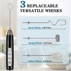 Ldeal Milk Foam: The portable milk frother handheld easily froths milk and stirs drinks in 15-20 seconds, creating a velvety smooth texture for coffee, lattes, milkshakes, hot chocolate and matcha powder. No need to go to a coffee shop, you can make your own best latte with your own hand frother. 3 Whisks and 3 Speed Adjustable:3 adjustable whisk speeds. Low speed is used for stirring egg yolks, egg whites, and powdered drinks. Medium speed is used for making jam, matcha, and baby food. High speed is used to stir milk or coffee foam, fluffy whipped cream. 3 interchangeable whisks: Spring whisk for frothing milk and coffee and making delicious drinks; Balloon whisk for mixing eggs and whipping cream; HOOK WHISK for mixing powders, making jam and baby food. USB-C Charging Long Battery Life: Our electric frother wand adopts USB charging design, which is more environmentally friendly and lighter than the battery type, allowing you to charge it anytime and anywhere. It can be used at home, in the office, or even taken out for camping. The built-in battery capacity is 1200mAh, which can be used several times a day after being fully charged. This drink mixer handheld also includes a charging indicator light that lights up red when charging and green when fully charged. Ergonomic and Premium Materials: Ergonomic handle and power button provide a comfortable and stable grip. And the electric whisk has a built-in powerful low-noise motor, so you won’t disturb your family when using it. Our coffee frother handheld is made of food-grade ABS stainless steel for high durability, corrosion and stain resistance. Designed to work with any kitchen accessory in your kitchen. Easy to Use Great Gift Choice: This handheld coffee frother is made of high-quality materials and is durable. Its stainless steel agitator attachment ensures long-term durability and efficient performance. Performs multiple functions and is ideal for making delicious homemade coffee and beverages. This electric milk frother is not only practical, but also has a simple and stylish design that can meet the aesthetic needs of different age groups. It is a thoughtful gift for friends and family. Please avoid immersing the engine in water.