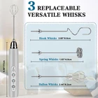 Ideal Milk Foam: The portable milk frother handheld easily froths milk and stirs drinks in 15-20 seconds, creating a velvety smooth texture for coffee, lattes, milkshakes, hot chocolate and matcha powder. No need to go to a coffee shop, you can make your own best latte with your own hand frother. 3 Whisks and 3 Speed Adjustable:3 adjustable whisk speeds. Low speed is used for stirring egg yolks, egg whites, and powdered drinks. Medium speed is used for making jam, matcha, and baby food. High speed is used to stir milk or coffee foam, fluffy whipped cream. 3 interchangeable whisks: Spring whisk for frothing milk and coffee and making delicious drinks; Balloon whisk for mixing eggs and whipping cream; HOOK WHISK for mixing powders, making jam and baby food. USB-C Charging Long Battery Life: Our electric frother wand adopts USB charging design, which is more environmentally friendly and lighter than the battery type, allowing you to charge it anytime and anywhere. It can be used at home, in the office, or even taken out for camping. The built-in battery capacity is 1200mAh, which can be used several times a day after being fully charged. This drink mixer handheld also includes a charging indicator light that lights up red when charging and green when fully charged. Ergonomic and Premium Materials: Ergonomic handle and power button provide a comfortable and stable grip. And the electric whisk has a built-in powerful low-noise motor, so you won’t disturb your family when using it. Our coffee frother handheld is made of food-grade ABS stainless steel for high durability, corrosion and stain resistance. Designed to work with any kitchen accessory in your kitchen Easy to Use Great Gift Choice: This handheld coffee frother is made of high-quality materials and is durable. Its stainless steel agitator attachment ensures long-term durability and efficient performance. Performs multiple functions and is ideal for making delicious homemade coffee and beverages. This electric milk frother is not only practical, but also has a simple and stylish design that can meet the aesthetic needs of different age groups. It is a thoughtful gift for friends and family. Please avoid immersing the engine in water.