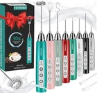 🎁【Gift First Choice】Our handheld coffee frother comes with well-designed outer packaging and premium quality, small and exquisite, making it an exquisite gift for women or men. Ideal gift for any occasion, such as Valentine's Day, Mother's Day, Christmas and birthday gifts. The power of the coffee mixer is high when it is working, and liquid may be splashed. Please use a taller and larger container to prevent the liquid from splashing on the table, clothes or other places. 🎀【3 Replaceable Stainless Whisks】The frother set includes 3 removable whisk heads. A U-shaped coffee frother is suitable for mixing milk powder and children's complementary food. The mesh type is suitable for coffee foaming. There is also a balloon beater just for baking. Hand frother weighs 0.5 lbs and is easy to carry. The handle of the milk frother is ergonomically designed for easy grip and use, while the bottom is flat for easy standing and storage without a stand. 🎀【3-Speed Settings】The coffee mixer has 3-speed buttons on the main body of the mini hand mixer, low, medium and full, allowing you to control and achieve the ideal milk frothing effect. Rich foam can be created in 30 seconds, allowing you to instantly enjoy the silky drink! Just rinse this frother handheld with running and clean water after use. Low, medium and high battery status indicators, the remaining power is clear at a glance, and schedule a charge anytime. 🎀【Proven and Trusted Quality】The milk frother is made of food-grade ABS material, and the detachable whisk head is made of high-quality stainless steel, providing quality assurance for your food safety. The built-in powerful low-noise motor brings more powerful speed, works efficiently, does not disturb the rest of the family, and allows you to spend a peaceful and peaceful morning. 🎀【USB-C Rechargeable Milk Frother】This electric milk frother is powered by a built-in 1200mAh rechargeable battery, no need to replace any batteries, environmentally friendly and durable. Compared with the traditional Micro USB charging port, the USB-C charging port design makes it more compatible and faster charging. The charging indicator light is red when charging, and green when fully charged. 💡 Tips: The coffee mixer has a lot of power when working, and there may be liquid splashing. Please use a higher and larger container to prevent liquid splashing on the desktop, clothes or other places. Product Description 1 Spring Whisk 2 Ballon Whisk 3 Hook Whisk 1 Family Baking Interactive 2 Family Baking Interactive 3 Enjoy Delicious Breakfast Various Colors are Available 1 2 3 4 5 6