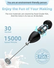 【You are a good tasteful person】so we designed this unique handle milk frother according to ergonomics. It is as light as 3 ounces, making it more comfortable for you to hold, and easy to make and taste the delicious milk foam, coffee, latte, and matcha 【You are a very efficient person】so we use a double-circle stirring head, double contact area, 15,000 rpm motor, 3 seconds to foam, 30 seconds to perfectly whip, and a cup of rich and delicate milk foam,don't wave your time 【You are a very tidy person】so we designed the stand like a suction cup wall mount that can be easily attached to smooth surfaces such as refrigerator cabinets and coffee machines, saying goodbye to messy countertops, and giveaway you a case which is a portable storage box, making it more convenient for you on-the-go 【You are an environment-friendly person】so we use the nice materials, Food-Grade FDA-Cleared, it is very safe to use. And the noise of frother wand when working is 30 decibels, which is almost silent,enjoy the fun of your making 【You are a very frugal person】 so we use safe rechargeable batteries, which can save the cost of buying 20 dry batteries a year, and a full charge can make milk foam more than 100 times,save your meoney 【You are a pretty clean person】so we use a waterproof design. Even if you stir the eggs, electric whisk can be easily cleaned,and keep the whisk working well,reduce your housework 【You are a loving life person】add milk frothers to cart. 2 years of customer service,7*24 hours e-mail on line,don't hesitate to take it home,these promises belong to you