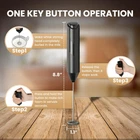 Make rich foam in seconds: Our handheld milk frother is with the speed of up to 14000 rpm, it makes creamy foam for your Latte, Hot Chocolate and Matcha within 10-20 seconds. It is powered by 2 AA batteries (Not included) can be used more than 1000 times Easy to use: Our whisk has simple one-touch button with a low noise level, tap the top button to start, release the button to stop. When you clean it, just put the whisk in the water and press the button to spin it clean. Classic Design: The Whisk is made of black PP and stainless-steel blender, safe and Hygenic. Simple and light design make it more convenient to operate, you will get richer and thicker froth than traditional methods. Enjoy your drink: Our hand drink mixer gives you the opportunity to enjoy a foamy drink. You can make your own drink in under a minute Perfect for lattes or cappuccinos, milk shakes and macchiatos, frappes, and tea Convenient: The milk frother comes with a convenient and stylish stand to easily be kept on the countertop. When stored on counter or table it sits nicely next other coffee accessories. Ideals for use at home, office, camping or traveling. Product Description Our handheld milk frother is with the speed of up to 14000 rpm, it makes creamy foam for your Latte, Hot Chocolate and Matcha within 10-20 seconds. It is powered by 2 AA batteries (Not included) can be used more than 1000 times Our whisk has simple one-touch button with a low noise level, tap the top button to start, release the button to stop. When you clean it, just put the whisk in the water and press the button to spin it clean. The Whisk is made of black PP and stainless-steel blender, safe and Hygenic. Simple and light design make it more convenient to operate, you will get richer and thicker froth than traditional methods. Our hand drink mixer gives you the opportunity to enjoy a foamy drink. You can make your own drink in under a minute! Perfect for lattes or cappuccinos, milk shakes and macchiatos, frappes, and tea The milk frother comes with a convenient and stylish stand to easily be kept on the countertop. When stored on counter or table it sits nicely next other coffee accessories. Ideals for use at home, office, camping or traveling.