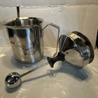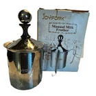 This manual frother pitcher is the perfect addition to your kitchen appliances. It has a 12 oz capacity and is made of stainless steel, ensuring durability and longevity. The silver color adds a touch of elegance to your coffee or tea set. The Joyfork brand milk frother is manual-powered and is perfect for making foam for your coffee, latte, or cappuccino. It has a manual power source, making it easy to use and maintaining. This small kitchen appliance is a must-have for coffee lovers and enthusiasts. KITCHEN-Gar