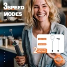 Package includes 1 mixing rod 1 Balloon Whisk Head 1 Milk Frother Whisk Head 1 USB charging cable Get your Lattes with just one button 3 speeds to choose from One charge can last a long time Powerful titanium motor Reliable and durable Different speeds suit different scenarios Easy to use and Cleanup The silicone rubber handle is made to fit comfortably in your hand. Easy clean up Equipped with three stainless steel milk frothing heads, giving you more choices, with cleaning brush, simpler cleaning To get rid of the splash when adjusting the speed level, please IMMERSE the frother/whisk into the liquids FIRST, then push the button to turn it on. This tip will eliminate the splash in 95% of cases. USB milk frother Rechargeable: The handheld milk frother is powered by built-in rechargeable battery, without battery replacement, eco-friendly and saving your money. It also comes with a cool green light shows full battery and red shows low battery , convenient in daily use.One time charge,dozens of days use. 3 Speeds Adjustable Coffee Frother: 3 Gears allow you to choose different speeds to achieve ideal frother effect.Low speed for Mixing protein powder drinks. Middle speed for making matcha tea. High speed for creating creamy milk froth which can be used in coffee, latte, cappuccino, and drink. 2 Replaceable Versatile Whisks: There are 2 replaceable versatile whisks available. Choose the spring whisk head to make the perfect milk foam for your morning & afternoon coffee.The ballon whisk head help you beat eggs & fluffy whipped cream in short time. High Quality Milk Frother: The detachable whisking head is made of food grade premium stainless steel, easy to clean. The built-in powerful low-noise motor brings strengthened speed rotation without disturbing your families and gives you a calm and tranquil morning. Tips: Our electric hand mixer offers exceptional power. For optimal results, we recommend using a cylindrical container with a diameter of 90-100mm and a height of at least 110mm. Please ensure the container is not more than 1/3 full of milk to prevent overflow.