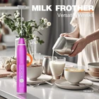 Package includes 1 mixing rod 1 Balloon Whisk Head 1 Milk Frother Whisk Head 1 USB charging cable Get your Lattes with just one button 3 speeds to choose from One charge can last a long time Powerful titanium motor Reliable and durable Different speeds suit different scenarios Easy to use and Cleanup The silicone rubber handle is made to fit comfortably in your hand. Easy clean up Equipped with three stainless steel milk frothing heads, giving you more choices, with cleaning brush, simpler cleaning To get rid of the splash when adjusting the speed level, please IMMERSE the frother/whisk into the liquids FIRST, then push the button to turn it on. This tip will eliminate the splash in 95% of cases. USB milk frother Rechargeable: The handheld milk frother is powered by built-in rechargeable battery, without battery replacement, eco-friendly and saving your money. It also comes with a cool green light shows full battery and red shows low battery , convenient in daily use.One time charge,dozens of days use. 3 Speeds Adjustable Coffee Frother: 3 Gears allow you to choose different speeds to achieve ideal frother effect.Low speed for Mixing protein powder drinks. Middle speed for making matcha tea. High speed for creating creamy milk froth which can be used in coffee, latte, cappuccino, and drink. 3 Replaceable Versatile Whisks: There are 3 replaceable versatile whisks available. Choose the spring whisk head to make the perfect milk foam for your morning & afternoon coffee.The ballon whisk head help you beat eggs & fluffy whipped cream in short time.And the hook whisk can help you enjoy the process of making jam and baby food. High Quality Milk Frother: The detachable whisking head is made of food grade premium stainless steel, easy to clean. The built-in powerful low-noise motor brings strengthened speed rotation without disturbing your families and gives you a calm and tranquil morning Tips: Our electric hand mixer offers exceptional power. For optimal results, we recommend using a cylindrical container with a diameter of 90-100mm and a height of at least 110mm. Please ensure the container is not more than 1/3 full of milk to prevent overflow.