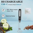 Milk Frother Rechargeable Handheld with Stand 3 Speed Adjustable Stainless Whisk Ideal Milk Foam : The portable milk frother handheld easily froths milk and stirs drinks in 15-20 seconds, creating a velvety smooth texture for coffee, lattes, milkshakes, hot chocolate and matcha powder. No need to go to a coffee shop, you can make your own best latte with your own hand frother. 3 Whisks and 3 Speed Adjustable : 3 adjustable whisk speeds. Low speed is used for stirring egg yolks, egg whites, and powdered drinks. Medium speed is used for making jam, matcha, and baby food. High speed is used to stir milk or coffee foam, fluffy whipped cream. 3 interchangeable whisks: Spring whisk for frothing milk and coffee and making delicious drinks; Balloon whisk for mixing eggs and whipping cream; HOOK WHISK for mixing powders, making jam and baby food. USB-C Charging Long Battery Life : Our electric frother wand adopts USB charging design, which is more environmentally friendly and lighter than the battery type, allowing you to charge it anytime and anywhere. It can be used at home, in the office, or even taken out for camping. The built-in battery capacity is 1200mAh, which can be used several times a day after being fully charged. This drink mixer handheld also includes a charging indicator light that lights up red when charging and green when fully charged. Ergonomic Design with Stand : Ergonomic handle and power button are comfortable and stable to hold. And the rechargeable milk frother has a built-in powerful low-noise motor, so you won’t disturb your family when using it. The included stand provides a dedicated spot for your hand frother , keeping your kitchen organized and easily accessible. In addition, the milk steamer and frother for latte quickly and hygienically after use. Easy to Use Great Gift Choice : This handheld coffee frother is made of high-quality materials and is durable. Its stainless steel agitator attachment ensures long-term durability and efficient performance. Performs multiple functions and is ideal for making delicious homemade coffee and beverages. This electric milk frother is not only practical, but also has a simple and stylish design that can meet the aesthetic needs of different age groups. It is a thoughtful gift for friends and family. Please avoid immersing the engine in water. Included Components Milk Frother Hook Whisk Spring Whisk Balloon Whisk USB Charging Cable Stand User Manual Visit Our Store & Browse Many More Products… Thank You…