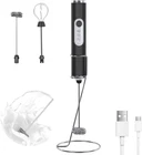 【USB milk frother Rechargeable】The handheld milk frother is powered by built-in rechargeable battery, without battery replacement, eco-friendly and saving your money. It also comes with a cool green light shows full battery and red shows low battery , convenient in daily use.One time charge,dozens of days use. 【3 Speeds Adjustable Coffee Frother】3 Gears allow you to choose different speeds to achieve ideal frother effect.Low speed for Mixing protein powder drinks. Middle speed for making matcha tea. High speed for creating creamy milk froth which can be used in coffee, latte, cappuccino, and drink. 【2 Replaceable Versatile Whisks】There are 2 replaceable versatile whisks available. Choose the spring whisk head to make the perfect milk foam for your morning & afternoon coffee.The ballon whisk head help you beat eggs & fluffy whipped cream in short time.And the hook whisk can help you enjoy the process of making jam and baby food. 【Desktop stand】Frother with a stand makes your countertop cleaner while keeping the frother clean.The detachable whisking head is made of food grade premium stainless steel, easy to clean. The built-in powerful low-noise motor brings strengthened speed rotation without disturbing your families and gives you a calm and tranquil morning. 【180 Days worry-free warranty】We offer 180 days warranty and 24h friendly customer service. If there are ever any issues about the product, please feel free to contact us and we will give you a free replacement or full refund. milk frother Rechargeable with stand