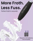 Indulge in Café-Style Coffee Bliss at Home! Effortless Froth, Every Time: Transform your morning coffee with a rich, velvety foam in just 15-20 seconds! This high-speed milk frother turns any cup into a barista-quality treat. Note: Requires 2xAA batteries (not included). Peace of Mind: We back our frother with a 2-year warranty, so you can enjoy frothy perfection worry-free! Customer happiness is our top priority. Be Your Own Barista: Skip the coffee shop lines and create luxurious lattes, cappuccinos, macchiatos, matcha, and even smoothies at home. This handheld milk frother makes drink dreams a reality. Ergonomic Design for Ease: With a soft-touch grip, this frother is built for comfort and control, making it perfect for coffee, cocktails, and powdered drinks. It’s your ideal mini electric whisk! Stylish Storage: The included stand keeps cleanup and storage as elegant as your coffee ritual—rinse, rest, and enjoy the simplicity of a home café experience.