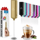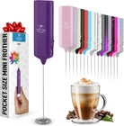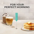 Milk Frother Wand, Handheld Drink Mixer. Portable. For Latte, Cappuccino, Matcha MINI FROTHER, MIGHTY POWER: Enjoy barista-quality coffee wherever you go with our mini milk frother. Its ultra-portable design fits effortlessly into any bag, making it perfect for travel, office, or home use. With a simple one-touch operation, creating rich, creamy foam is quick and easy. Whether you're commuting, at the office, or on a weekend getaway, this frother ensures you can enjoy your favorite frothy beverages anytime, anywhere. Embrace the convenience and power of our mini frother wand and elevate your coffee experience on the move. MAKE RICH, CREAMY FROTH IN SECONDS: We coffee lovers are serious when it comes to our coffee. This milk frother handheld gives that professional finishing touch to your latte, cappuccino, macchiato or hot chocolate. Make delicious foamy creamer for your drinks at home without a trip to the coffee shop with your own frother handheld. The benefits of having your own coffee frother are endless; you can make your own lattes just how you like, because you know your tastes best. Note: Packaging may vary. MATCHA WHISKING, COFFEE & MORE: Our drink mixer works better than a manual matcha whisk for making matcha tea and works far better than a fork or coffee stirrers. This hand frother works very well to mix nutritious protein powder drinks with no extra container, blender or bottle shaker to wash. Use our electric whisk for your whisking and mixing needs: Give healthy shakes and smoothies a kick by adding powder or egg nog flavor and mixing. PROVEN & TRUSTED QUALITY: We use only premium materials for our frother for coffee. The construction will last, backed by our Zulay Guarantee to not rust or break, ever. Our small and efficient electric frother works on all types of milk - half and half, creamer, soy, almond, cashew, hazelnut, whole milk, and other dairy such as butter or cream. EASY TO CLEAN & STORE: Cleanup for this coffee mixer is even faster. To clean it, just put the coffee mixer wand in hot running water and briefly turn it on – instantly clean! When stored on a counter or table, it sits nicely next to other coffee accessories. Our powerful and durable coffee frother handheld is powered by two AAA batteries (not included) with a compact electric design that easily fits in a drawer. Product Description 1.54 inches x 4.33 inches x 0.75 inches. Weight: 1.13 oz Power Source Battery Powered Color Aqua Included Components Battery Material Stainless Steel Material Type Stainless Steel Voltage 3 Volts (DC) Model Name Mini Froth Milk Frother Recommended Uses For Product Residential Number of Batteries 2 Additional Features Compact Design Special Feature Compact Design Product Care Instructions Hand Wash Only Style Name Mini Froth