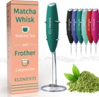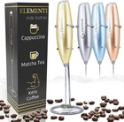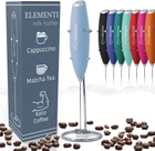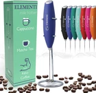 UNLEASH YOUR PASSION FOR COFFEE: Immerse in the perfect froth! Our milk frother's high-speed motor crafts luxurious foam in just 15-20 seconds, transforming ordinary coffee time into a moment of pure joy (Requires 2xAA batteries – not included). PEACE OF MIND GUARANTEED: Life can be unpredictable, but our 2-year warranty isn't. Should you have concerns, we're here to ensure your satisfaction. Because your happiness is our success. BE YOUR OWN BARISTA: No more coffee shop queues. Our frother enables you to create café-quality lattes, cappuccinos, macchiatos, flat white, matcha tea, or even your greens powder smoothie, right in the coziness of your home. A personal coffeehouse experience, any time you desire. COMFORT REDEFINED: Our milk frother, designed with a ergonomic soft-touch grip, is the perfect coffee frother handheld tool. It's more than a tool; it's an ally in your drink crafting journey. Use for cocktails, drink mixes and more - the perfect mini electric stirrer for powder drinks ELEGANTLY EFFORTLESS: With the provided stand, cleanup and storage become a chic part of your routine. Just rinse, rest, and relish the simplicity. Because every moment of your coffee experience should be uncomplicated and delightful. Product Description Elementi Milk Frothers 1 Powerful Motor 2 Stainless Steel 3 Stand Included Cappuccino In under 30 seconds, you'll have a thick, creamy foam that can be used to make lattes, cappuccinos, macchiatos and so much more. Matcha Tea Coffee not your thing? Use the Elementi Milk Frother to make matcha tea in seconds without the work of a bamboo whisk. Hot Chocolate And for the kids (or, let's be real, for yourself) you can even make whipped hot chocolate! Bulletproof Coffee Great for bulletproof coffee! Just add coffee to melted butter and whisk for 30 seconds to enjoy a smooth blend. Compare Elementi Milk Frothers Add to Cart Add to Cart Add to Cart Add to Cart Add to Cart Customer Reviews 4.5 out of 5 stars 18,592 4.5 out of 5 stars 2,547 4.4 out of 5 stars 1,256 4.5 out of 5 stars 2,547 4.5 out of 5 stars 1,081 Price $9.99 $ 9 . 99 $8.77 $ 8 . 77 $9.99 $ 9 . 99 $9.99 $ 9 . 99 $7.99 $ 7 . 99 Stainless Steel Whisk ✔ ✔ ✔ ✔ ✔ Stand ✔ ✘ ✔ ✘ ✘ On/Off Button Press and hold to operate Press and hold to operate Turn on to operate Press and hold to operate Press and hold to operate Batteries 2 AA Batteries (not included) 2 AA Batteries (not included) 2 AA Batteries (not included) 2 AA Batteries - Included! 2 AA Batteries (not included) Motor High Torque Motor High Torque Motor Extremely High Torque Motor High Torque Motor High Torque Motor