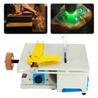 Mini Table Saw Jewelry Rock Polishing Machine Bench Grinder Polisher Table Saw Mini Table Saw Jewelry Rock Polishing Machine Bench Grinder Polisher Table Saw Description If you enjoy making jewelry and like polished stones, a grinder can be a very flexible and versatile tool. This table grinder that can handle a variety of heavy grinding tasks is your ideal choice! It helps you complete polishing and cutting work faster and better through variable speed, high-power motors, and a variety of accessories, making itself a great helper for you! Key Features 5-in-1 Bench Grinder: Comes with a jade saw blade, a woodworking saw blade, a fiber wheel, a flexible shaft, a carving handle, a drill chuck, and other accessories, this bench grinder allows for polishing, cutting, polishing, grinding, and carving. Therefore, you can create various decorations yourself. High Efficiency: With a 750W pure copper motor and infinitely adjustable speed(800-10000rpm) through the control knob, this product has high efficiency to meet your cutting, grinding, carving, punching, and polishing needs. Additionally, the 6" saw blades allow for 0.39in cutting depth. Durable and Sturdy: The premium aluminum, nylon, and steel materials and plastic spraying process give this product high stability, durability, high strength, and wear resistance , together with the pure copper motor and elongated&thickened bearings, making it maintain good performance for a long time. Lightweight and Portable: It is compact (11.4*8.66*9.25 inches) and portable (12.1 pounds), making it easy for you to take it to the place you need for various polishing tasks. High Stability: The aluminum base with non-slip rubber feet can effectively alleviate vibration and avoid scratching the countertop. The mounting holes and angle brackets allow for further fixation on the workbench, which helps to mitigate the potential damage caused by vibration to items to be cut or polished. Safe to Use: The main switch and saw blade are protected by an outer shell, which not only prevents dust and water from entering critical components but also effectively prevents accidents. The overheating protection function makes the machine less susceptible to overheating. The sink can effectively cool the machine and be waterproof , making your work safer. Complete Accessories: The complete installation accessories such as carbon brushes, chuck&handle keys, grinding wheel&saw blade connecting rods, and practical tools needed during work such as fiber wheel and flexible shaft save you cost and time without additional tedious purchases. Flexible Angle Ruler: Its operating table is equipped with a prominent yellow angle ruler, which can not only adjust the angle of the material to make your work more precise but also be used to push the material without touching the saw blade, making it safer. Good Clamping: The drill chuck has a precise clamping range(0.06-0.4"), making it suitable for polishing more items of different sizes while reducing deviation to the maximum extent. Easy to Maintain: You can use flat head screws to unscrew the carbon brush cover and replace the carbon brush, extending its service life. Details Practical Basket: It can be installed below the cutting saw blade, which can help you collect the cut waste and debris and keep your desktop clean. Ideal Handle: The 5.24-inch long carving handle provides a comfortable grip, and its three-disc chuck has good stability, helping you complete your work better. Long Power Cord: The approximately 4.92ft power cord allows you to have plenty of disposable lengths, thus reducing the limitation when you use it. Application It is suitable for carving, polishing, and drilling of jade, agate, metal, wood, etc. It is also suitable for manual polishing, grinding, and cutting of beads, bodhi, and various DIY materials. Specifications Power: 750W Voltage: 110V Speed: 800-10000rpm Blade Size: 15cm/6in Color: White, Yellow, Blue Style: Angled Plug: US-Standard Material: Aluminum, Copper, Nylon, Steel, Rubber Surface Treatment: Plastic Spraying Flexible Shaft Clamp Size: 4mm/0.157in Drill Chuck Range: 1.5-10mm/0.06-0.4in Cutting Depth: 0-10mm/0-0.39in Power Cord Length: About 1.5m/4.92ft Installation Required: Yes Number of Items: 1 Gross Weight: 6kg/13.2lbs Net Weight: 5.5kg/12.1lbs Table Size(L*W): 26.5*22cm/10.43*8.66in Product Size: 29*22*23.5cm/11.4*8.66*9.25in Package Size: 36*29*23cm/14.17*11.41*9.05in Package Included 1*Table Grinder 1*Goggles 1*Angle Ruler 1*Basket 1*Flexible Shaft 1*Flexible Shaft Handle 1*Drill Bit Clamp 2*Saw Blades 5*Grinding Heads 1*English Manual All Accessories for Assembly Notes Please note this tool should be grounded while in use. Please always wear proper eye and face protection devices such as safety glasses and face shields(not included). Please do not wear loose clothing or jewelry. Please tie back your long hair. Before use, please check each attachment for cracks or defects, and do not use any damaged, loose, vibrating or unbalanced accessories, or any attachments that are higher than the maximum rated speed of the machine. Please always insert the shank or arbor of an accessory or mandrel into the collect(or collet holder chuck or chuck arbor) as far as possible to provide proper support. Please tighten the collet or chuck securely. Please do not use excessive side pressures which may tend to bend or break the shank or arbor or an accessory. Let the speed of the accessory do the work. Please do not install the motor by jamming or using excessive pressure on the polishing wheel, buff, wheel, or other accessories. This can result in damage to the motor. Please do not operate your power tool during a perceptible power decreases. Please turn the power tool off and do not use it until power is fully restored. Please read the operating manual completely before use. And pay particular attention to the safety instructions included. Please allow the slight color difference caused by the shooting light
