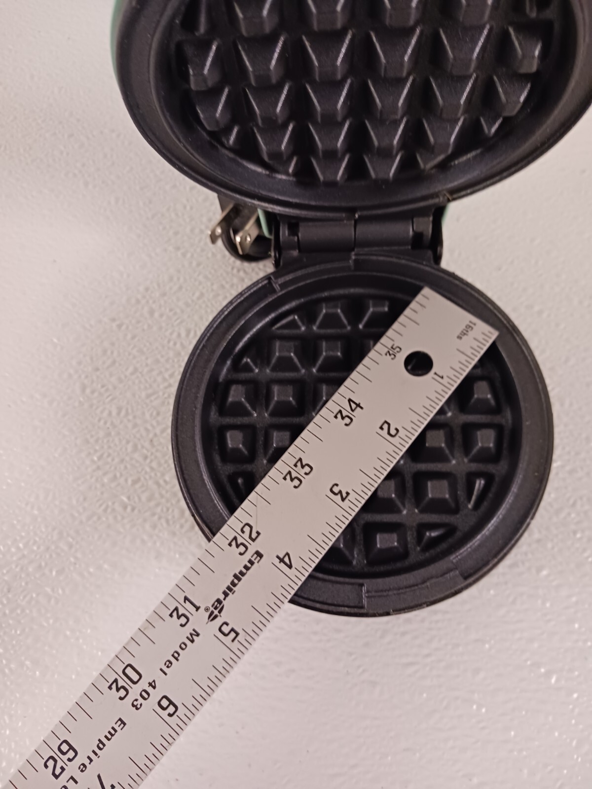 Enjoy the perfect blend of sweet and savory with this Dash Neon Pastel Green 4 Inch Round Waffle Maker. This electric waffle maker is perfect for making Belgian-style waffles and features a round shape, 350 W power, and a vibrant green color. The Dash DMW001AQ model is compact and easy to use, making it ideal for small kitchens and dining rooms. Create delicious waffles with ease using this waffle maker's non-stick surface and even heat distribution. Whether you're serving up a family favorite or hosting a brunch, this waffle maker is sure to impress. Add a touch of color to your kitchen with this Dash Neon Pastel Green 4 Inch Round Waffle Maker. 145