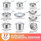Return Policy Fast Delivery Trusted seller Mueller Pots and Pans Set 17-Piece, Ultra-Clad Pro Stainless Steel Cookware Set, Ergonomic EverCool Handle, Includes Saucepans, Skillets, Dutch Oven, Stockpot, Steamer More Product Description Contemporary Essentials - This contemporary 17 Piece kitchen cookware set ensures you have everything you need to create inspiring meals every day! With a brushed satin stainless steel design and sleek ergonomic handles, the practical cookware will suit any kitchen décor while providing professional cooking performance for every meal, large or small. Strong And Durable -The pots and pans feature a 3-ply premium quality stainless steel base with a thick aluminum core for fast and even heat distribution and maximum durability. The non-toxic stainless steel cookware will not discolor, react with food, or alter flavors, keeping your meals safe and healthy. The even heating reduces hot spots that can easily burn foods and cooks foods faster to save you both time and energy! Versatility - This cookware set is a complete kitchen in a box! Simmer, sauté, fry, boil or braise to your heart's content! Includes 1, 2 and 3qt saucepans, 8”, 10” and 12” skillets, large 3.5qt sauté pan, 4.5qt Dutch oven, versatile 8qt stock pot as well as a multi-tiered steamer insert that fits all saucepans and interchangeable lids. Each pan is suitable for oven and stovetop cooking, including induction. Seal In Flavors - Utilize the professional-grade tempered glass lids to help retain heat and seal in moisture and nutrients for healthier, more flavorful meals. The covers with steam vents fit perfectly within the smoothly tapered rims, designed to eliminate drips and spills while pouring. Double riveted comfort grip handles provide extra strength and stay cooler for longer to help maneuver on the stove top. Superior Quality With Mueller - We are to offer you only the best quality products designed to make your life easier. If you need any help, please feel free to contact us. Our unparalleled 24/7 live telephone customer support is ready and waiting to assist with anything you need! Shipping Returns Payment Shipping Shipping is FREE to all addresses other than APO/PO boxes in the lower 48 states. All our stock ships from US-based warehouses. Shipped via USPS or UPS (depending on location and package weight) Unless stated otherwise, all orders will ship within 24-72 hours of your payment being processed. Check our feedback to see the great reviews of FAST shipping we offer. Returns Seller does not accept returns Payment We currently accept payment via eBay managed payments only. Once payment is cleared, we will dispatch your shipment within 1-3 business days. Please refer to the "Shipping" tab for more information regarding shipping speed to your destination.