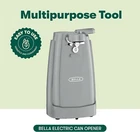 About this item INFINITE POSSIBILITIES: Our automatic can opener is a versatile powerhouse and a must-have kitchen gadget! With a 60-watt motor and durable stainless steel cutting blade, it effortlessly tackles cans of all sizes, from tiny tuna cans to large tomato jars ONE-TOUCH WONDER: Bella's can openers feature a magical auto-turn feature for an easy operation. With a single touch, watch those lids fly as our opener effortlessly glides into action. No more wrestling matches with stubborn cans—prepare to be amazed! CONVENIENT STORAGE: The electric knife no-show cord storage keeps your kitchen clutter-free and your countertop neat and organized, allowing you to tuck it away when not in use. Enjoy our great home accessories without sacrificing precious counter space EASY CLEANING: Cleaning up is a breeze with this jar opener. The removable cutting lever allows for easy access, while the stainless steel blade and magnetic lid holder ensure a mess-free experience. Spend less time cleaning and more enjoying food STYLISH VARIETY: Bella's electric jar opener is available in a wide range of colors to better match your home decor and add style and personality to your kitchen. It's also the perfect gift idea for a new house and a great addition to a wedding registry From the manufacturer