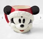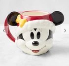 This is a rare set of two Williams Sonoma Disney Mickey & Minnie Mouse Figural Christmas mugs. The mugs feature a festive Mickey Mouse and Minnie Mouse design, made of stoneware in a multicolor pattern. They have a 28 fl oz capacity, are dishwasher safe, and are part of a Disney-themed collection suitable for Christmas and all occasions. The mugs are ideal for collectors and fans of Disney characters.