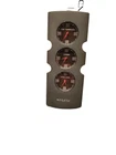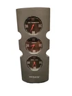 NetJets Desk Clock with 3 Dial Faces showing 3 time zones (San Francisco, London and Hong Kong) Heavy duty frame, think some kind of stone. Black Face dials with red hands, and white markers. Battery operated. Replaced battery and works great. See pictures for additional details. Very nice and heavy piece. Uses GP186 watch battery.