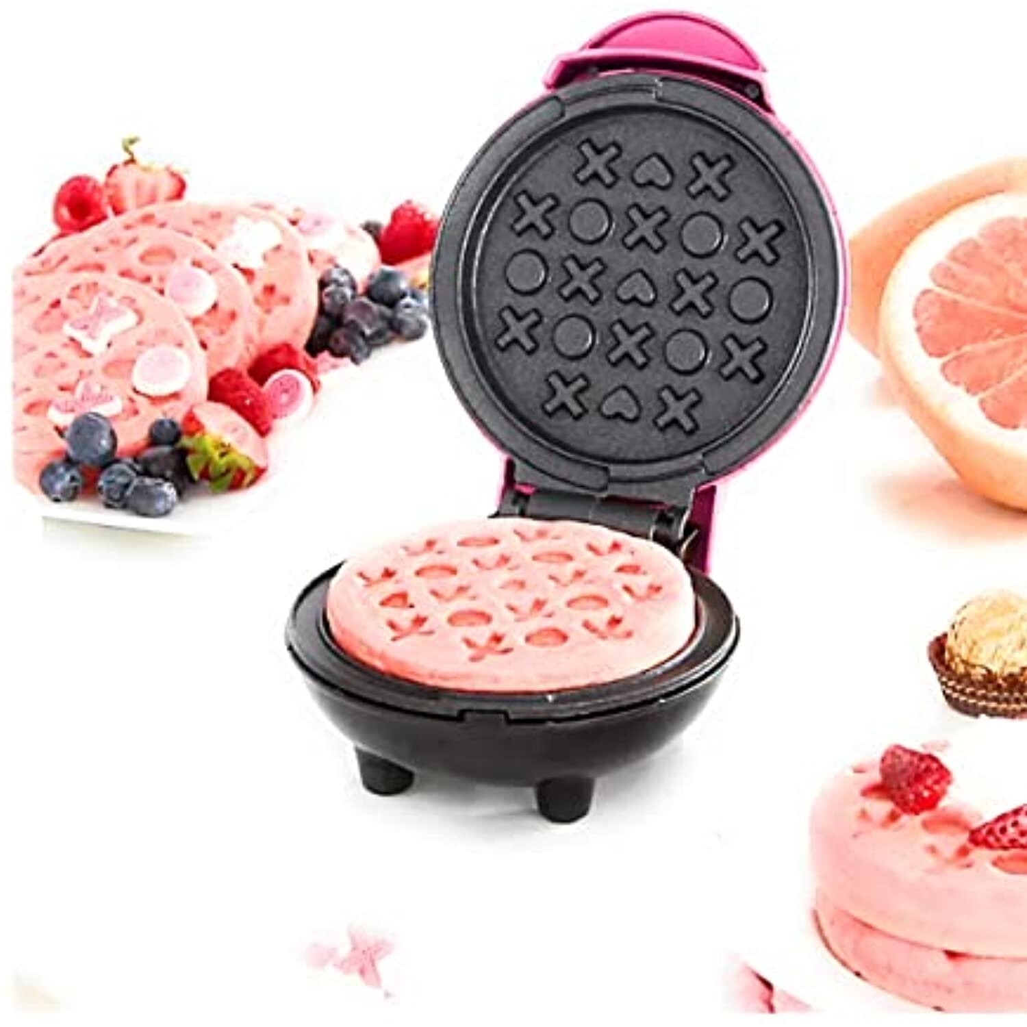 New Pink Mini Heart Nonstick Waffle Maker Perfect for Valentine's Day