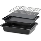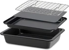 Perfect Size for Versatile Use - Our 5-piece bakeware set includes one 9 ½ x 7 x ¾ inch cookie sheet, one 9 ½ x 7 x 1 ¾ inch baking pan, one 8 ¾ x 5 ¾ inch cooling/baking rack, and two silicone baking mats, allowing you to bake and cook a variety of delicious treats in your toaster or convection oven. Healthy Cooking & Portion Control - Our personal size baking pans provide single servings for healthier cooking, perfect for baking, cooking, broiling, grilling or reheating perfectly portioned meals every single time. No More Parchment Paper - Replace hazardous parchment papers with Checkered Chef Toaster Oven Pans that come with nonstick silicone baking mats, ensuring your toaster oven is safe and easy to clean. Stainless Steel Rack & Easy Cleaning - Our 100% oven-safe stainless steel rack is great for elevating food and promoting healthier meals. Enjoy hassle-free cleaning with dishwasher-safe pans, racks, and silicone mats. Ideal for Toaster Ovens & More - Perfect for toaster ovens, small ovens, convection ovens, countertop ovens, RV ovens, air fryers, and dorm rooms. Our heavy-duty bakeware resists warping and makes an ideal gift for personal cooking enthusiasts. Create Your Favorite Baked Goods In A Smaller Oven! Ideal for toaster ovens, small ovens, convection ovens, countertop ovens, RV ovens and dorm rooms or just when you want to cook a smaller portion in your regular oven. With heavy duty construction to resist warping, these are the perfect accessories for every personal cooking enthusiast. You don’t need to go without, join the latest craze of toaster oven baking! You’ll be amazed at the things you can create in your toaster oven, from lasagne and casseroles to cookies and brownies, the possibilities are endless. What’s In The Box? Each set contains one 9 ½ x 7 x ¾ inch cookie sheet, one 9 ½ x 7 x 1 ¾ inch baking pan, one 8 ¾ x 5 ¾ inch cooling / baking rack and two silicone baking mats to fit in each pan. The pans are non-stick so wash up is easy - you can even put them in the dishwasher! And, the silicone baking mats included, eliminate the need for parchment paper not only making them safer but saving you money too! Healthy Cooking! These days everybody wants to eat healthier and the best way to do that is to portion control your food. Don’t miss out on your favorite treats, just control your portions! Personal size baking pans are great for healthier cooking as they provide single servings - cooking for 1 has never been easier. Bake, cook, broil, roast or reheat the perfect portion every time. For even healthier cooking try using the stainless steel rack (included) inside the baking pan to elevate your meat or chicken out of the cooking fat giving you a crispier and healthier result. Create Your Favorite Baked Goods In A Smaller Oven! Whether it be a small oven in an apartment or cabin, a countertop oven or a toaster or convection oven in your dorm room or RV, this nonstick baking pan set has got you covered. You don’t need to go without, join the latest craze of toaster oven baking! You’ll be amazed at the things you can create in your toaster oven, from lasagnas and casseroles to cookies and brownies, the possibilities are endless. Featuring one 9 ½ x 7 x ¾ inch cookie sheet, one 9 ½ x 7 x 1 ¾ inch baking pan, one 8 ¾ x 5 ¾ inch cooling / baking rack and two silicone baking mats to fit in each pan this unique set makes cooking for one a breeze. The pans are non stick so wash up is easy - you can even put them in the dishwasher! And, the silicone baking mats included, eliminate the need for parchment paper not only making them safer but saving you money too! Healthy Cooking! These days everybody wants to eat healthier and the best way to do that is to portion control your food. Don’t miss out on your favorite treats, just control your portions! Personal size baking pans are great for healthier cooking as they provide single servings - cooking for 1 has never been easier. Bake, cook, broil, roast or reheat the perfect portion every time. For even healthier cooking try using the stainless steel rack (included) inside the baking pan to elevate your meat or chicken out of the cooking fat giving you a crispier and healthier result. With heavy duty construction to resist warping, these are the perfect accessories for every personal cooking enthusiast. Packaged securely together in a box for protection during transit, this set would be an ideal gift for someone who lives alone, has an RV or is just moving into a dorm room.