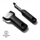 Sharp, durable, Japanese stainless steel blades won’t rust Straight Peeler all-purpose design for effortless prep Julienne Peeler creates precise strips of carrots, zucchini and more Non-slip ergonomic handles Dishwasher safe