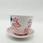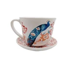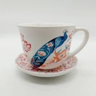 Opal House Peacock Mug and Saucer White Pink Bird Floral