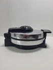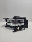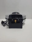 Enjoy delicious homemade waffles with the Oster Waffle Maker. This electric waffle maker features a round shape and can make one waffle at a time. It is made of stainless steel and comes in a sleek silver color to complement any kitchen décor. The non-stick surface ensures easy clean-up after use. With a voltage of 120 V, this standard waffle maker is perfect for any home kitchen. The waffle maker features a number of useful aspects, including a power source of electric, a width of 8 inches, and a non-stick surface. Get your mornings off to a great start with the Oster Waffle Maker. The item has been tested and does work.