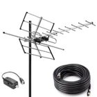 Receive Free Local HDTV and UHF/VHF Signals -- Full HDTV support 720p, 1080i, 1080p, 4K | Working Frequency: VHF 170~230MHz | UHF 470~860MHz | Receive free digital broadcast high definition TV signals. HDTV Reception & Long Range Outdoor TV Antenna -- Built-in high gain and low noise Amplifier ensures stunning pictures and sound reception within 120 miles range, making this the best long range TV antenna. Easy Installation -- Antenna comes mostly pre-assembled. Only minor assembly required. No tools required. Mounting pole not included - Put B07BNSL21G into Amazon search box for pole. Weather Resistant -- PBD outdoor TV Antenna is lightning protected, durable design with grounding done. Superior construction to withstand tough outdoor weather conditions. What you get -- PBD tv antenna with power supply adapter and 40FT RG6 Coaxial Cable.