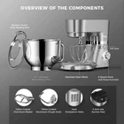 Stand Mixer, POWWA 7.5 Quart Electric Mixer, 6+1 Speed 660W Tilt-Head Kitchen Food Mixers with Whisk, Dough Hook, Mixing Beater & Splash Guard for Baking, Cake, Cookie (Silver-with Handle) Brand POWWA Color Silver-with Handle Product Dimensions 15"D x 8.3"W x 11.8"H Blade Material Stainless Steel Special Feature Adjustable Speed Control Capacity 7.5 Quarts Controls Type Knob Item Weight 13.1 Pounds Is Dishwasher Safe Yes About this item 🍰【660W Powerful Motor】The POWWA Electric Stand Mixer has A High-end 8830 Manual Motor with 660W Power Consumption, it has Long Service Life and Provides Strong Power to Meet Most of Your Requirements for A Kitchen Mixer (Operation Noise <70dB) 🍞【7 Speed Modes】6 Speed Low to High Continuous Mixing and 1 Pulse Mode can Ensure Tailor Mixing Effortlessly and Thoroughly for A Variety of Food, such as Dough, Egg, Meat, Vegetables, Pizza, Cake, Bread, Cookies, Pastry, Muffins, Waffle, Frosting, Meringue, Mashed Potato, and More 🍕【7.5 Quart Bowl】This Mixing Bowl is made from Imported 304 Stainless Steel which Ensures Food Safety and the 7.5 QT Capacity can Satisfy most of the Daily Use of 3-7 Persons' Families; A Suitable Removable Splatter Guard with A Large Feeding Port Helps Add Ingredients Without Making A Mess, Allowing You to Cook at Great Ease, Enjoy Preparing Homemade Dishes 🍩【3 in 1 Multifunction】 Multifunctional Household Stand Mixer has A Dough Hook with 1-3 Level Speed for Dough, A Mixing Beater for Stirring at Medium Speed, A Whisk for Egg Mixing at High Speed, and all the Accessories are Dishwasher Safe for Quick and Easy Cleaning 🍝【Easy to Use】Just Press the Rise Button to Lift Up the Head to Put the Mixing Bowl, then Clockwise Rotate the Bowl to Lock; The Tilt-head Design Mixer Allows Access to Install or Uninstall Bowl and Accessories Easily; Put the Whole Mixer Machine on A Flat Platform, the 5 Anti-slip Suction Feet on the Bottom will Ensure the Stability; Just Bring POWWA Stand Mixers Back Home to Free Your Hands! (ETL Certified)