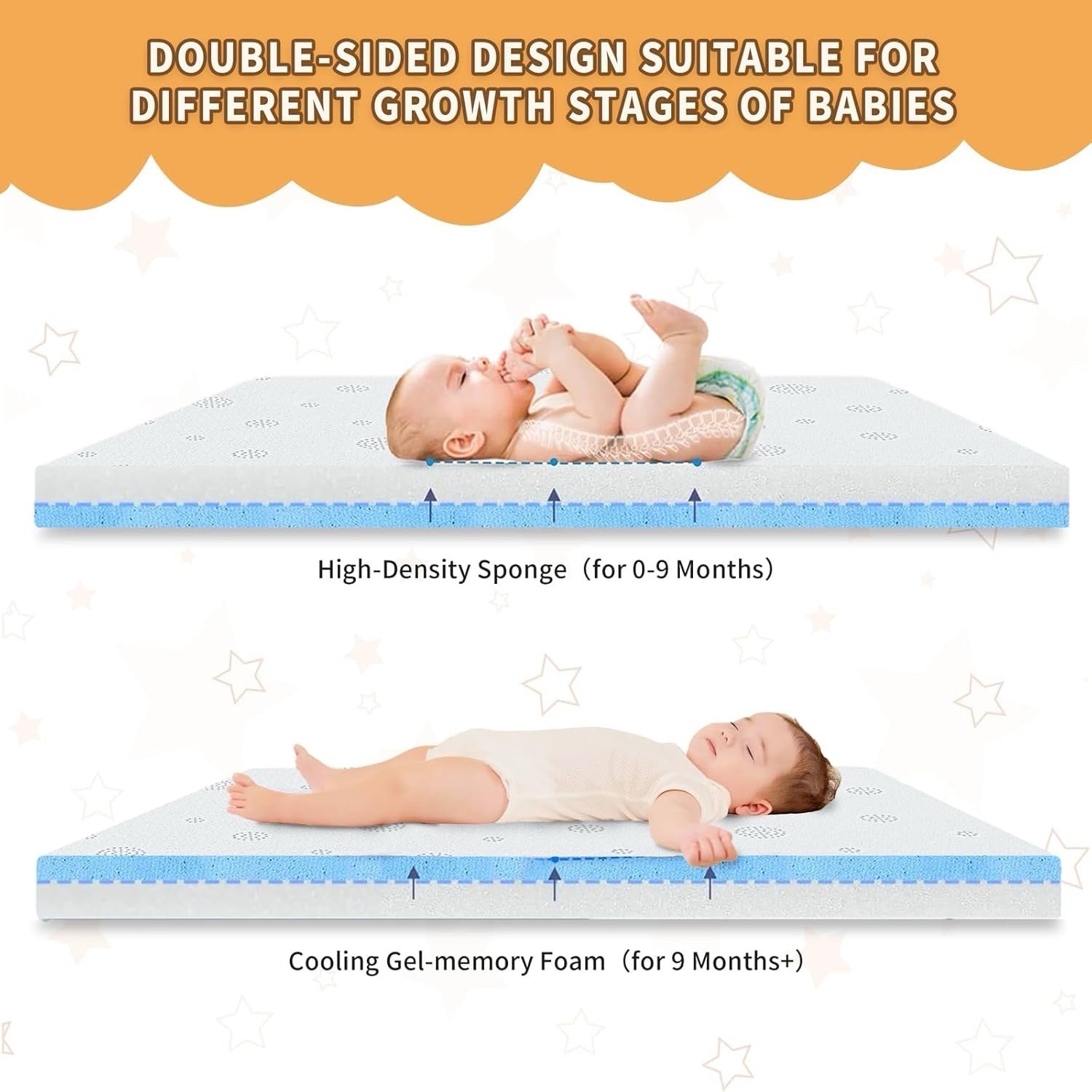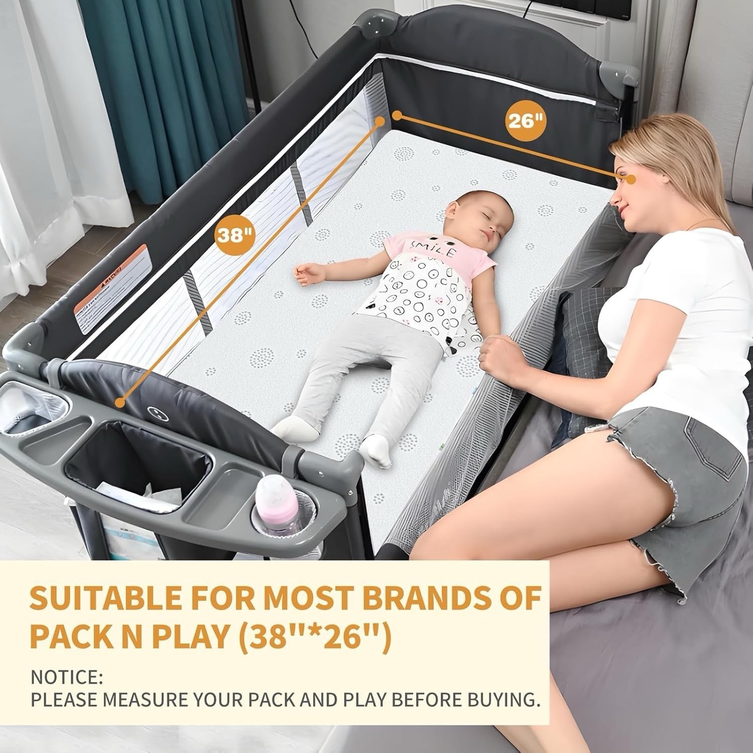 Trifold Pack and Play Mattress,38"x26" Double-Layer Memory Foam Pack N Play M...