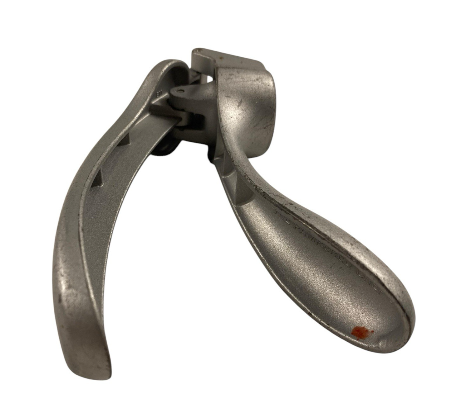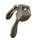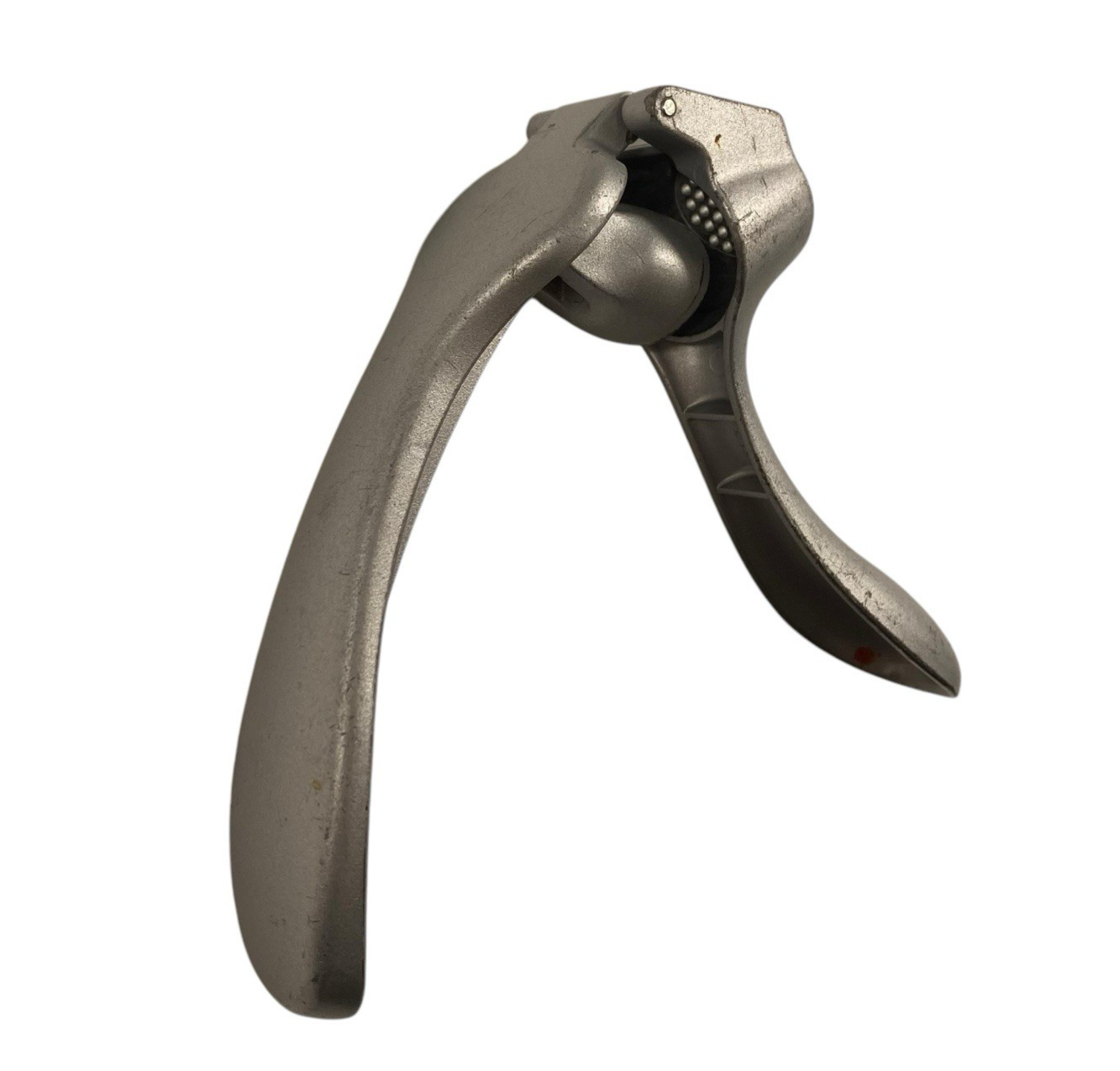 The Pampered Chef Hand Held Garlic Press is a stylish and practical kitchen tool made of durable cast aluminum in a sleek silver color. Designed by the trusted brand Pampered Chef, this garlic press is perfect for easily mincing garlic cloves for your favorite dishes. Made in Taiwan, this high-quality tool is a must-have for any home cook looking to simplify their cooking process and ensure perfectly minced garlic every time. It is made of durable aluminum with a nonstick coating. It features an extra-large hopper to accommodate large cloves and can also be used for ginger and horseradish. It is designed for easy use and efficient garlic extraction, keeping hands clean and smell-free. It is dishwasher-safe. It is rust-proof. The ergonomic handle ensures a comfortable grip. * * * Disclaimer for Preowned Items * * * This is a preowned item and may show signs of previous use such as minor stains, scratches, discoloration, or wear. We do our best to photograph any noticeable imperfections. Please take your time to review the photos closely, as they are part of the item's description. Photos aim to show all aspects of the item — both good and not so good — so any flaws are clearly visible. Please allow for slight color differences due to lighting, manual measurement, and variations in device or screen settings. This item comes from a smoke-free, pet-friendly household.
