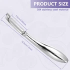 Parts List: 1 x Vegetable Peeler Highlight description: Product Material: Our fruit and vegetable peeler is made of 304 stainless steel material and mirror polishing process, which ensures a delicate appearance and is not easy to rust, and the structure is strong and not easy to break and damage Incisive: This fruit and vegetable peeler uses a stainless steel blade to ensure the sharpness of the peel, helping you complete the peeling task quickly and smoothly and improve cooking efficiency Ergonomic Design: Our stainless steel fruit and vegetable peelers are designed with ergonomic and non slip handle that provides a comfortable grip and an easy use experience Versatile: This fruit and vegetable peeler can handle a wide range of fruits and vegetables such as potatoes, carrots, cucumbers, mangoes, etc. Save time and add a sense of accomplishment and fun to your kitchen cooking Easy to Clean: Our stainless steel peeler is easy to clean and can be rinsed directly with water or put in the dishwasher for efficient cleaning Detailed description: Description: Made of stainless steel material, this fruit and vegetable peeler is rust resistant and sturdy. Comes with 2 styles for you to choose as needed. Incisive blade provides efficient peeling. It can be used for fruits and vegetables such as potatoes, carrots, cucumbers, mangoes and more. Key Feature: Non Slip Handle: This stainless steel fruit and vegetable peeler is designed non slip handle to stop slipping for firm grip and safe use. Specification: Product Name: Fruit Vegetable Peeler Material: 304 Stainless Steel Color: Silver Style Optional: Y Style, I Style Size: Y Style: 17.5x5.9cm/6.89x2.32 inch I Style: 18.3x5.3cm/7.2x2.09 inch Note: 1.There may be slight differences between the picture and the actual color of the commodity. We will try our best to show you the exact color. 2.Please allow slight dimension difference due to manual measurement.