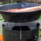 With the Petromax Fire Stand, you can use the heat over the chimney starter. Both parts of the ingenious device can be connected in the middle in no time. Once the Fire Stand is ready, it needs only be placed on the chimney starter. While charcoal and briquettes are starting to burn, there is enough heat for frying the first ingredients in a pot or a pan or for preparing delicious beverages, e.g. coffee in the percolator or tea in the teakettle. And thus, no heat goes unused. Moreover, you can also use the Fire Stand as a traditional, practical trivet for pots and pans.The cross-shaped stand fits on barbecue starters or chimney starters with a diameter of 5.7 in to 6.3 in (14.5 to 16.5 cm) and 7.5 to 9.8 in (19 to 25 cm) Visit Our Store Contact Us Petromax Fire Stand With the Petromax Fire Stand, you can use the heat over the chimney starter. Both parts of the ingenious device can be connected in the middle in no time. Once the Fire Stand is ready, it needs only be placed on the chimney starter. While charcoal and briquettes are starting to burn, there is enough heat for frying the first ingredients in a pot or a pan or for preparing delicious beverages, e.g. coffee in the percolator or tea in the teakettle. And thus, no heat goes unused. Moreover, you can also use the Fire Stand as a traditional, practical trivet for pots and pans. The cross-shaped stand fits on barbecue starters or chimney starters with a diameter of 5.7 in to 6.3 in (14.5 to 16.5 cm) and 7.5 to 9.8 in (19 to 25 cm). After assembling the parts, join the Fire Stand to the chimney starter thanks to the ready-made cut-outs. Quickly and trouble-free, you now have a source of heat for starting to cook and for frying food, or a practical supporting surface. Material: stainless steel Material thickness: 0.1" Dimensions: 13.6" L x 13.6" W x 2" H Weight: 0.5 lbs